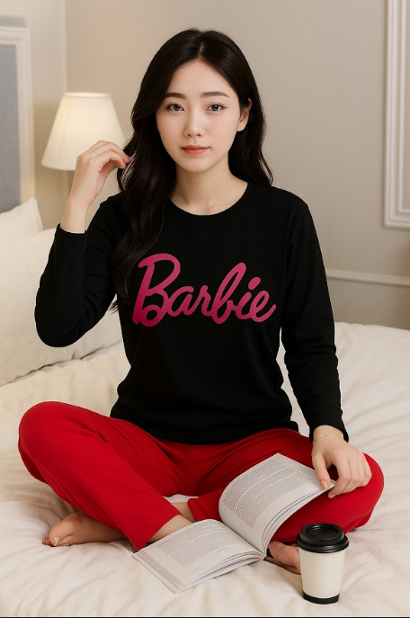 Unwind in style with our Women's "Barbie" Black & Red Cotton Lounge Set, the perfect blend of comfort, fashion, and attitude. Whether you're cozying up with a book, enjoying your morning coffee, or winding down for the night, this set brings iconic Barbie flair to your loungewear collection.